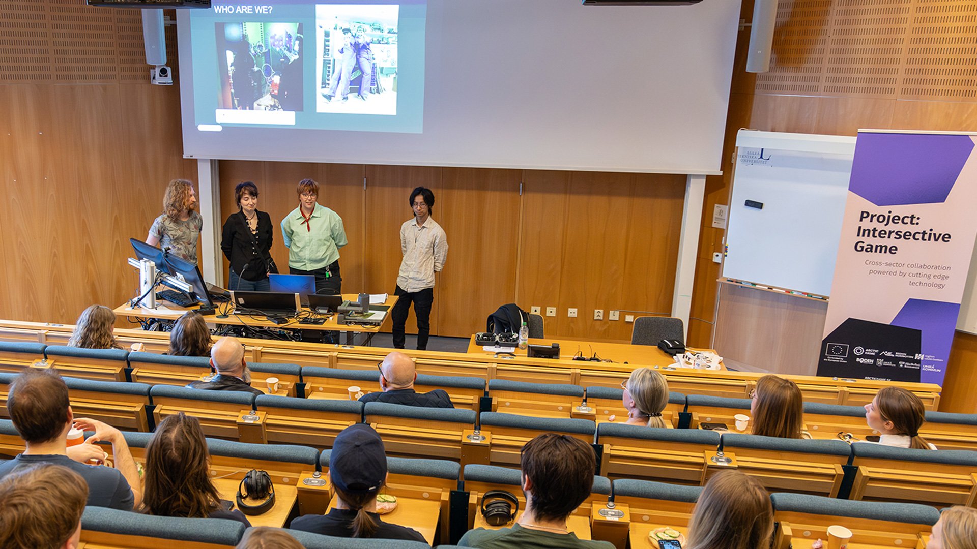 10 Jun 2024In the Intersective Game project, an Arctic Game Breakfast was organized with the theme of motion capture. Participants from both industry and academia had the opportunity to listen to inspiring projects created using this technology and take a tour of one of the labs at Campus in SkellefteƄ, where motion capture is set up for use.